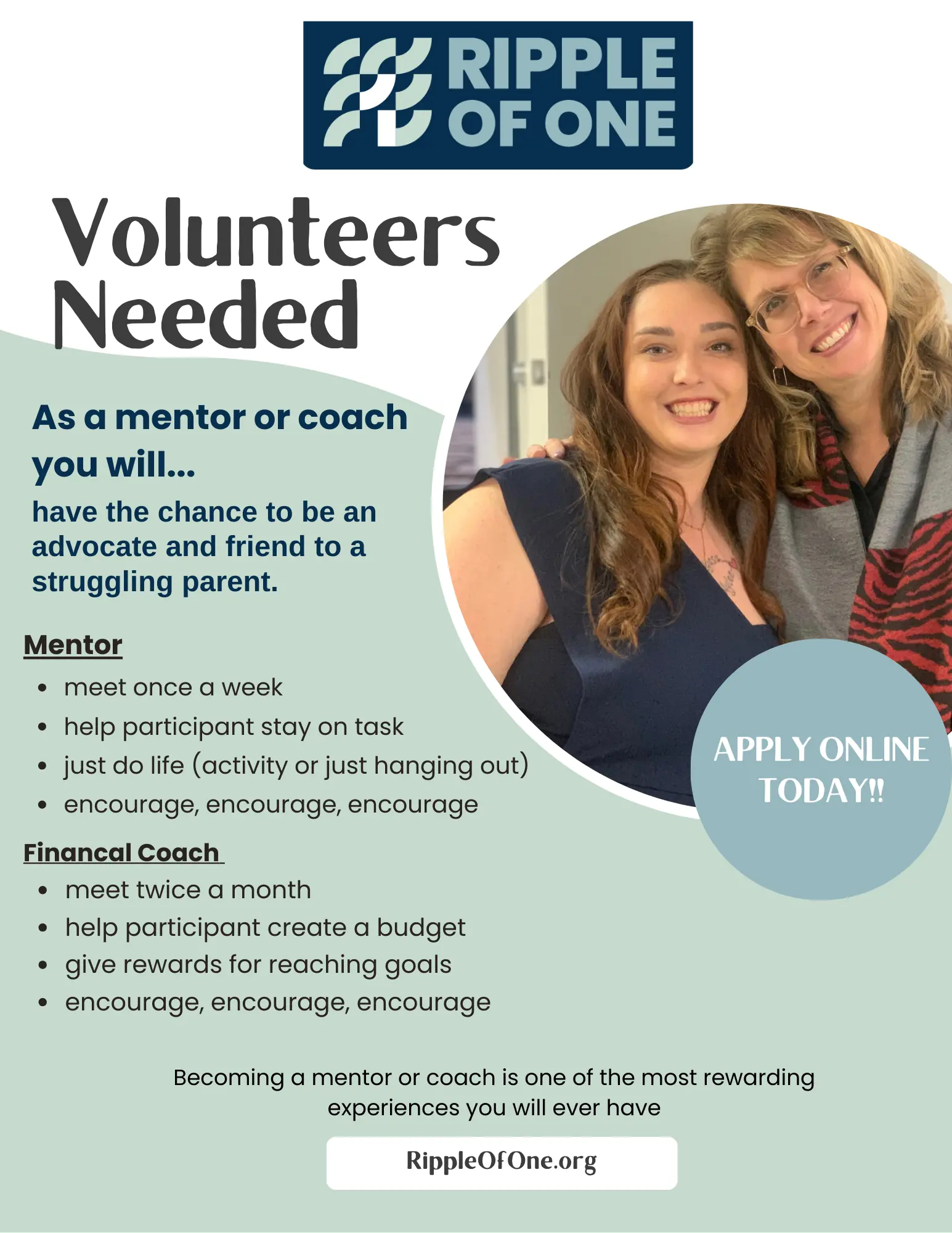 You can impact families seeking to move beyond public assistance and to financial independence in South Carolina. If you have a heart for listening and encouraging others, we need you.